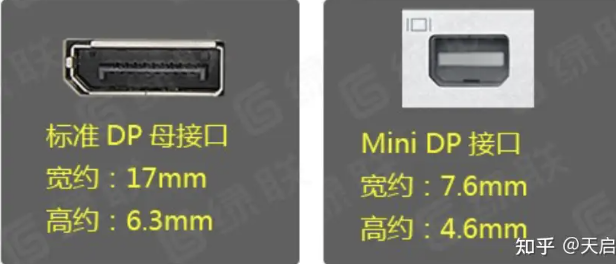 外观特征:DP 像缺了一角的矩形;Mini-DP 是苹果当年在大力推的小方口,如果你是苹果mini的用户,可能能在电脑后端看到这个接口。
